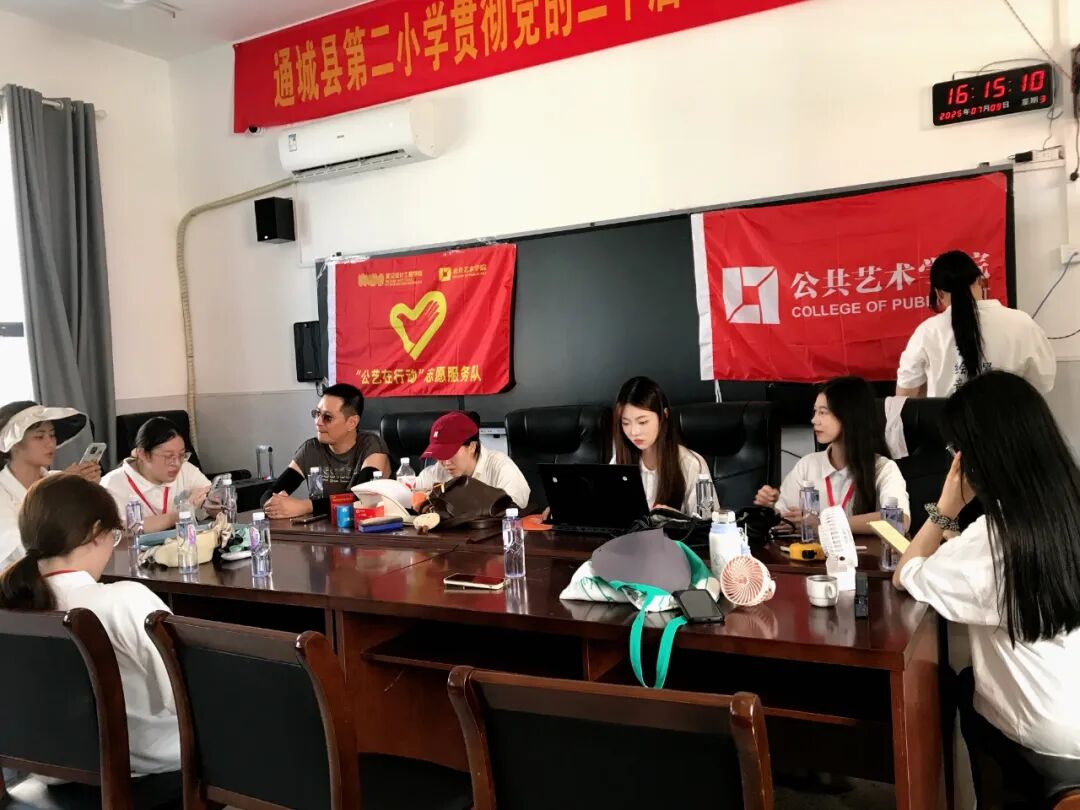 指导老师陈惹和团队队长围绕了学校课程方案展开细致调整与协商。为了让“暑假学堂”的每一课都更贴合孩子们的需求,团队成员反复打磨细节,让青春的热忱在务实的沟通里沉淀成更扎实的模样,方案在碰撞中完善,初心在交流中坚定。当 “艺绘童心” 志愿服务队的旗帜在阳光下展开时,这份凝结着无数心血的课程方案,将化作课堂上孩子们的欢声笑语,在这片土地上种下温暖的种子。