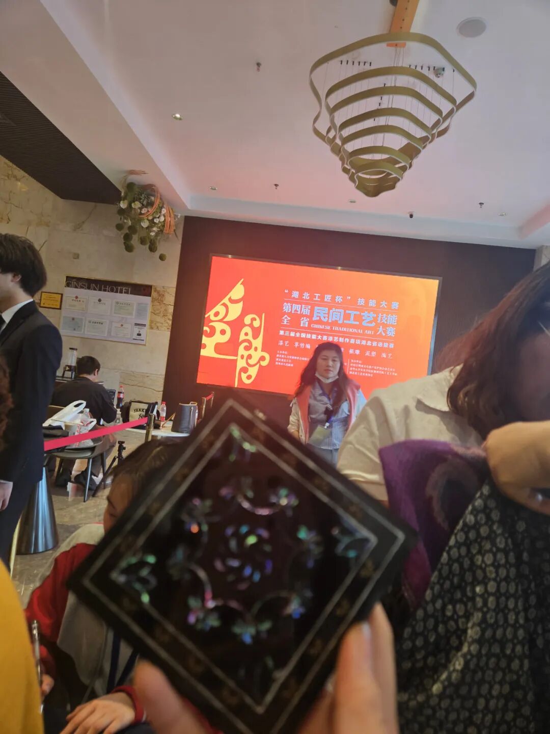在众多参赛单位中,我院工艺美术专业青年教师陈翔宇带领的石薇芳、邹豪杰、唐珂、牟余4名学生团队表现尤为亮眼。这支年轻队伍凭借扎实功底与沉稳心态,最终摘得两项宝贵的优胜奖。更令人振奋的是,其中一位选手成功跻身第三届全国技能大赛漆艺制作赛项湖北省选拔赛名单,为学院赢得了荣誉,也为个人向更高竞技舞台发起冲击赢得了入场券。