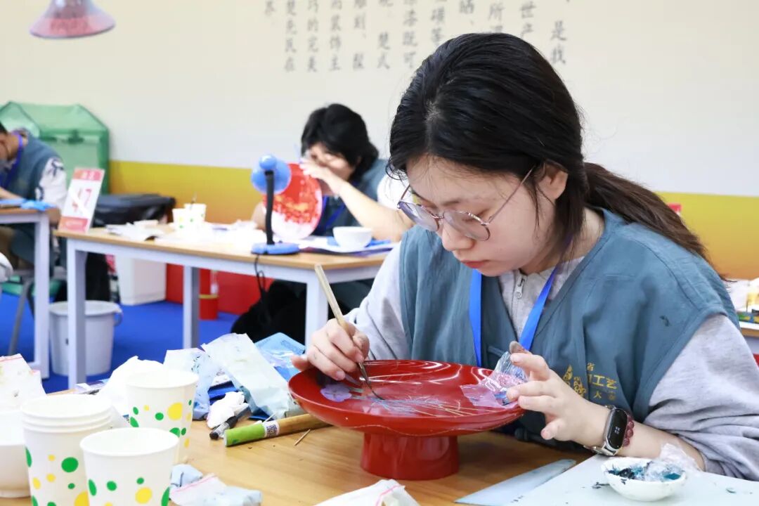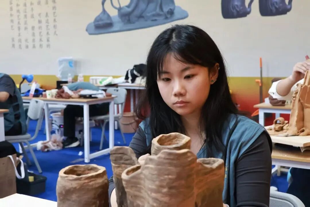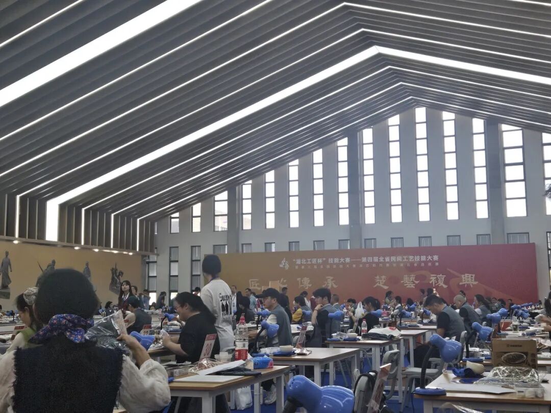 大赛现场堪称一场指尖上的盛宴。无论是刺绣者飞针走线的专注,还是木雕者精雕细琢的沉稳,抑或是陶艺者指尖泥土的灵动,无不彰显荆楚大地深厚的文化底蕴与传承活力。选手们屏息凝神,于方寸之间倾注心力,每一次落笔、每一道刻痕、每一根丝线的穿插,皆是对“匠人精神”最生动的诠释。