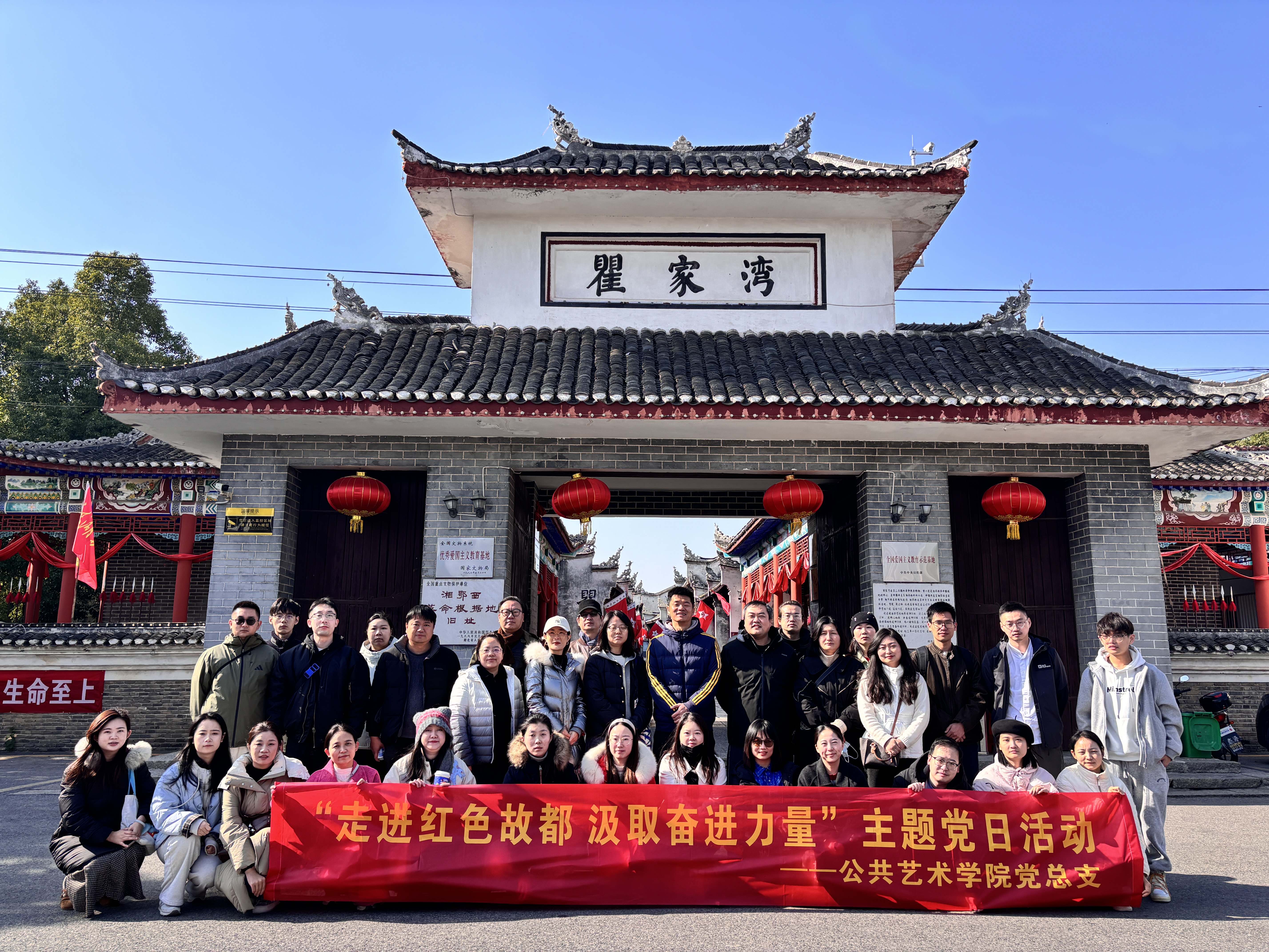 2025年12月3日,公共艺术学院党总支组织全体党员及部分工会会员,前往洪湖瞿家湾湘鄂西革命根据地旧址,开展了一场以“走进红色故都,汲取奋进力量”为主题的红色教育实践与秋游活动。此次活动旨在通过实地探访革命旧址、缅怀革命先烈,引导广大党员教师筑牢信仰之基,凝聚奋进合力,同时丰富教职工文化生活,增强团队凝聚力。