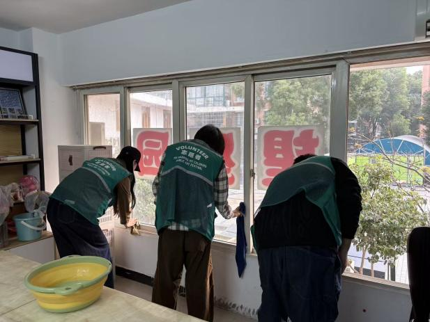 走进守望星园,志愿者们先拿起扫帚与抹布,分工协作打理园区——认真清扫角落灰尘,让地面洁净无杂物;细致擦拭每一扇窗户,让阳光通透洒落。用整洁舒适的环境,为与“星星的孩子”相处铺垫满满暖意,以点滴行动传递守护的心意。