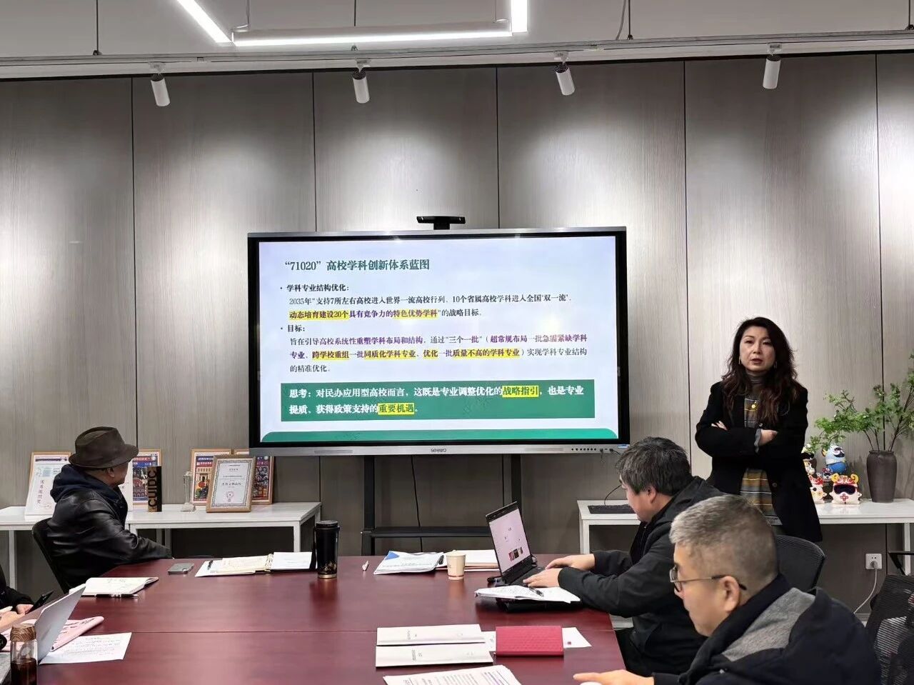 会议最后,学院党总支书记、常务副院长吴茜作了题为“学科专业规划与发展思考”的专题报告。她深入分析了当前艺术学科发展面临的新形势与新要求,系统阐述了我院学科专业建设的未来思路与发展路径。吴院长要求全院上下高度重视,以评促建。她还就推进教学数字化转型升级、赋能艺术人才培养提出了具体构想与要求,为学院下一阶段的高质量发展指明了方向。