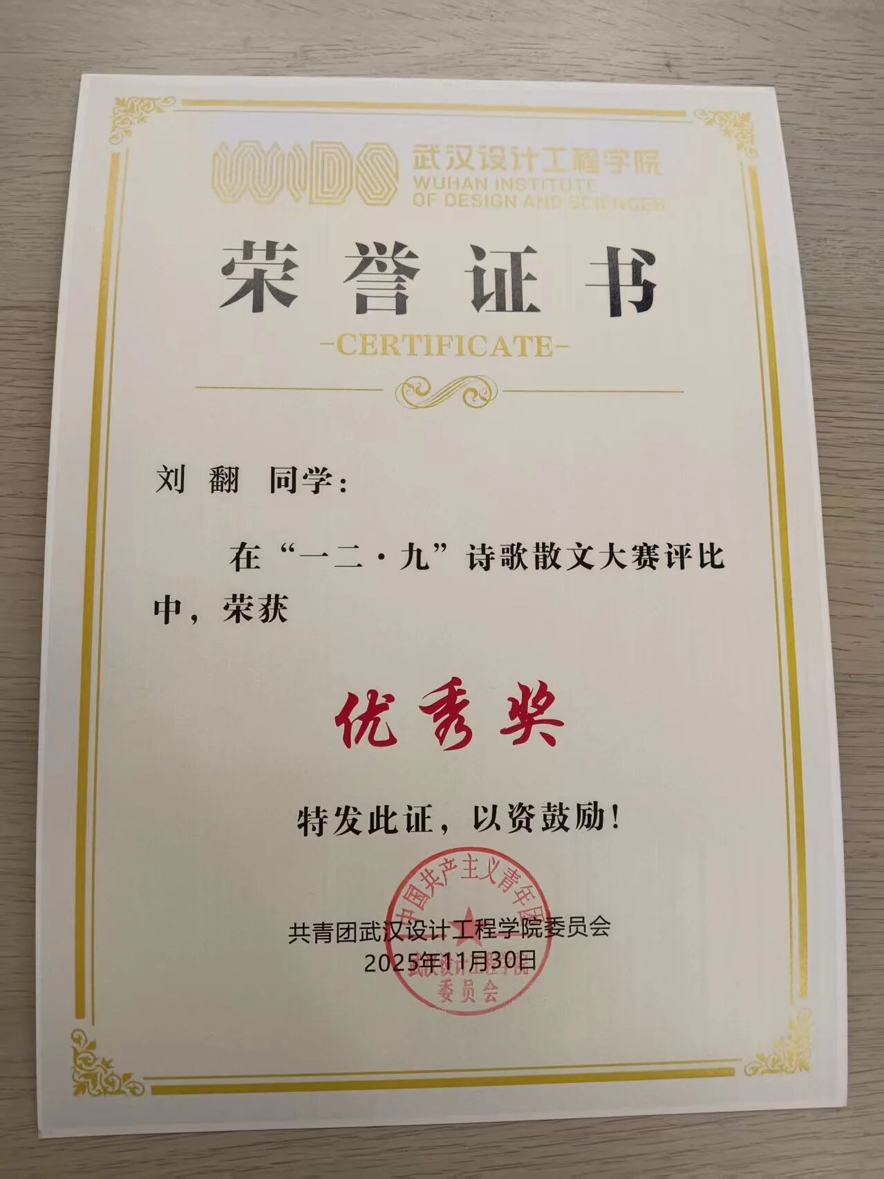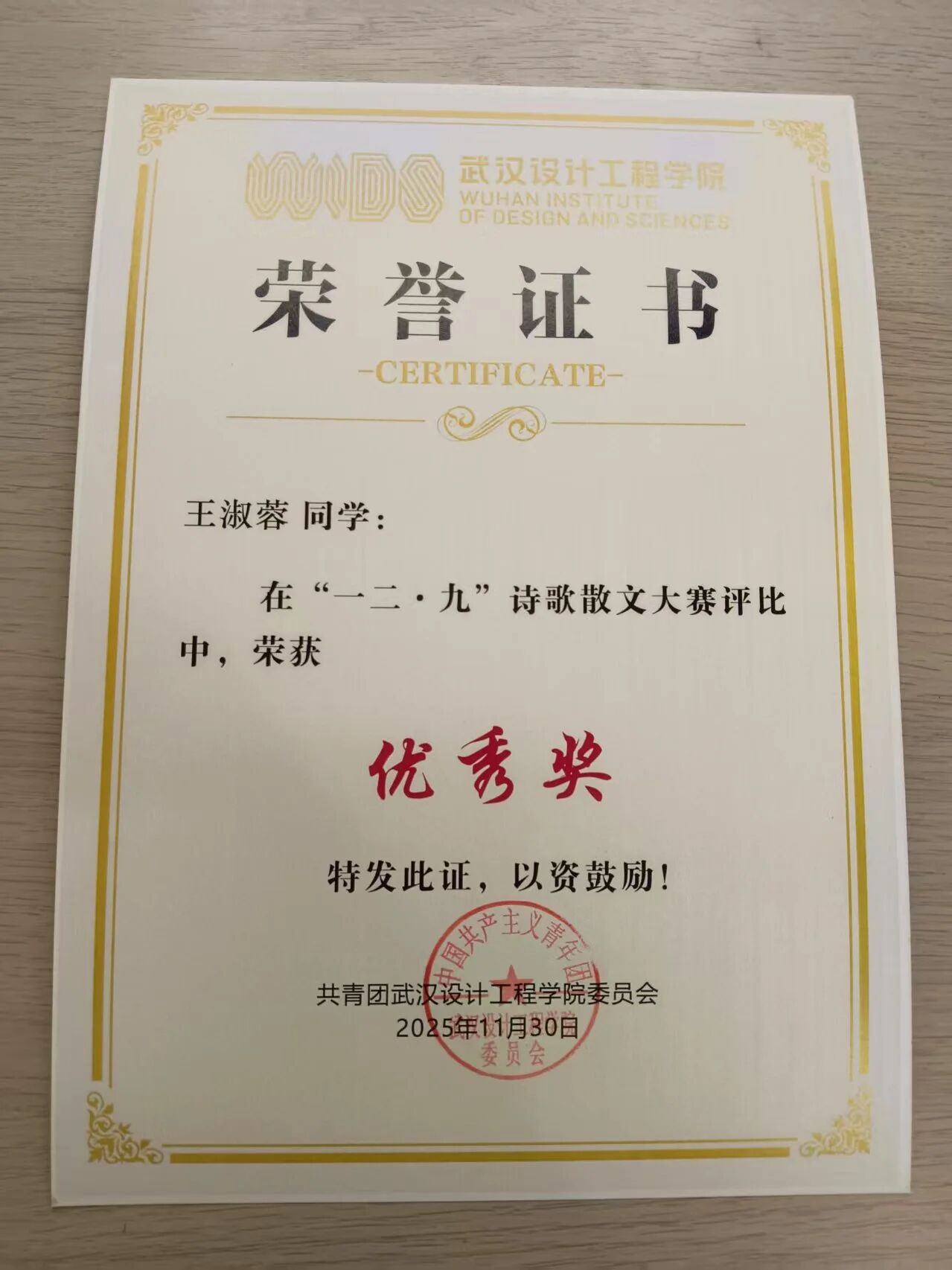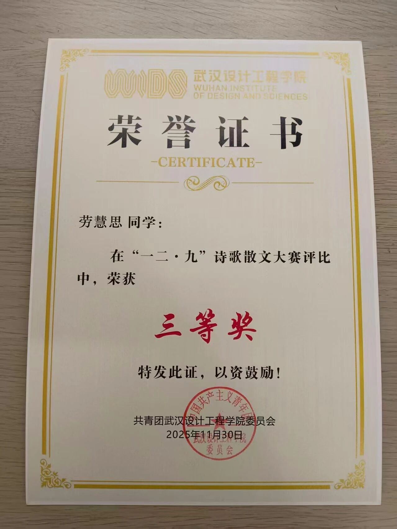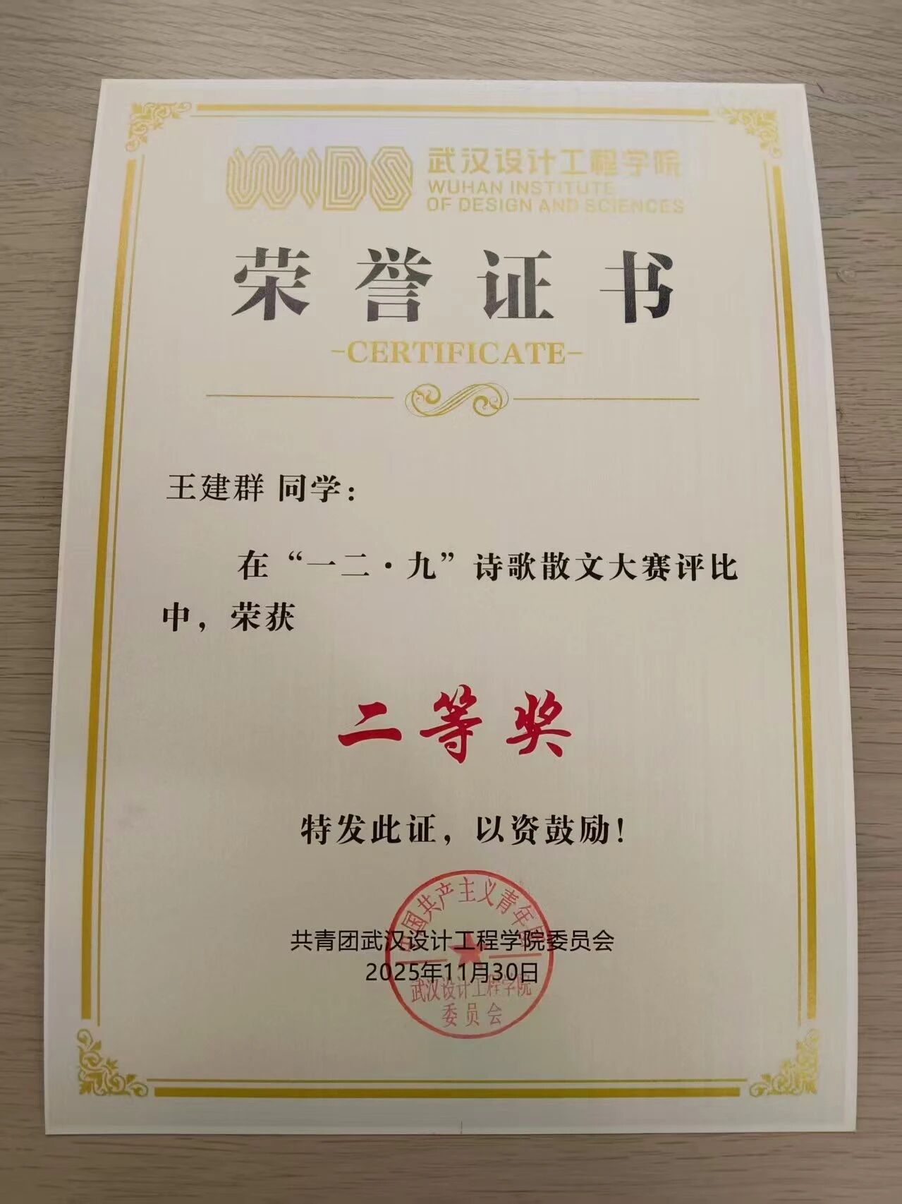 此次获二等奖的为我院王建群同学;获三等奖的为我院劳慧思同学;获优秀奖的为我院王晶同学、王淑蓉同学、刘翻同学。也愿更多同学执笔抒怀、以诗传情,下次赛场再展文采!