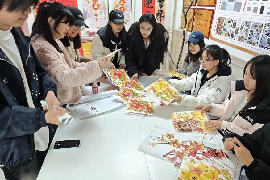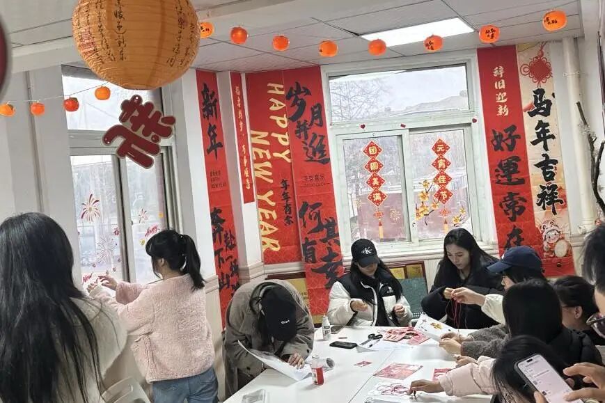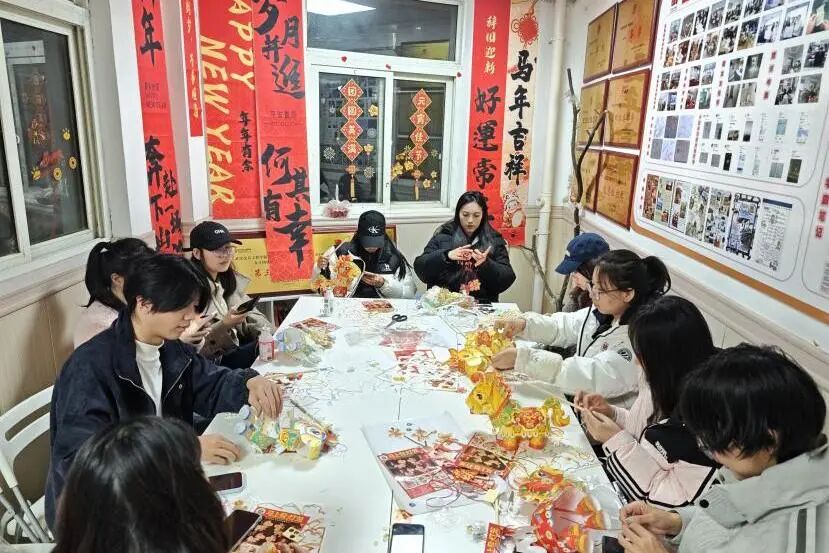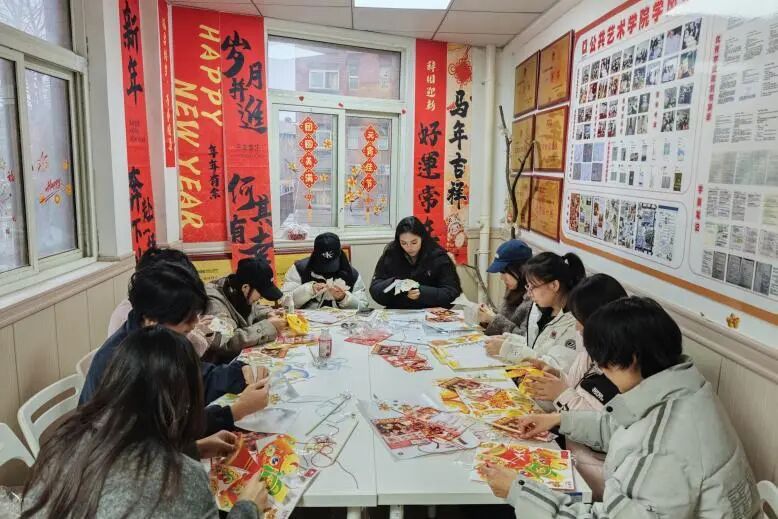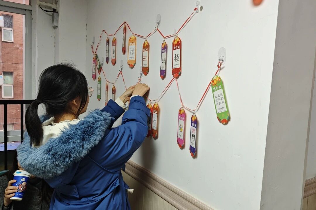 在氛围装饰环节,现场准备了烟花、福字、马年吉祥等主题贴纸,师生们自由创作、随心粘贴,将“团圆圆满”的美好寓意,定格在活动现场的每一个角落。原本温馨的共美艺苑,在大家的装点下更添几分元宵佳节的喜庆与暖意。